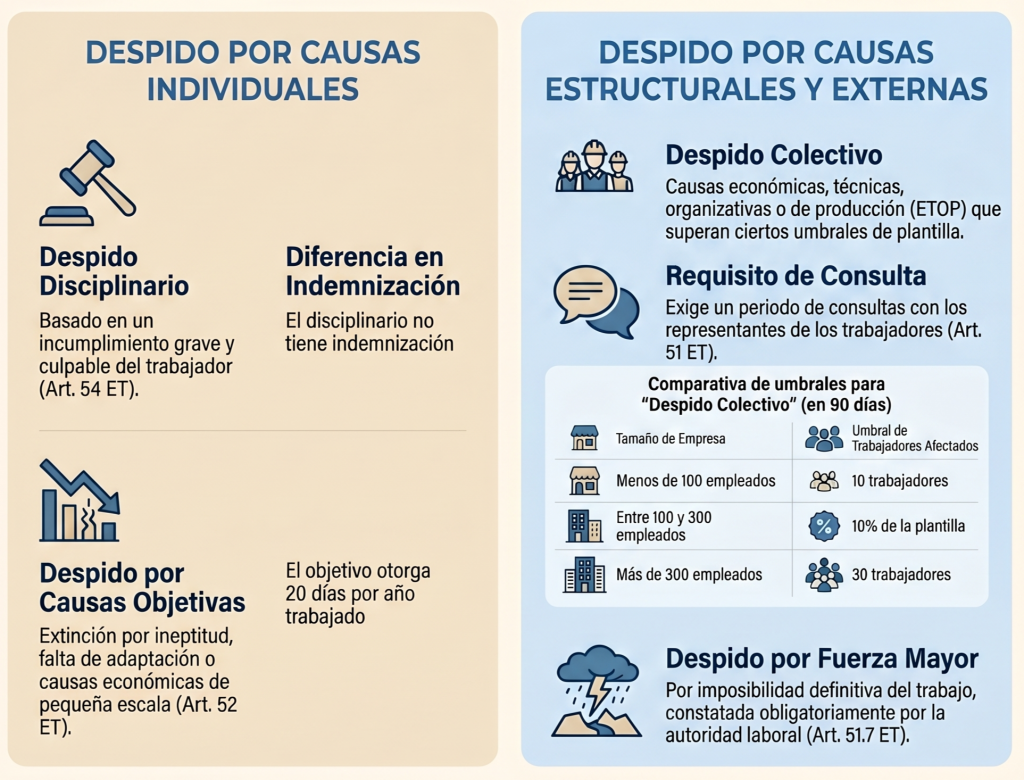 - Despido Disciplinario: Requiere una falta grave y culpable. Sin pruebas sólidas o un expediente sancionador previo, estos despidos suelen ser revocados en sede judicial.